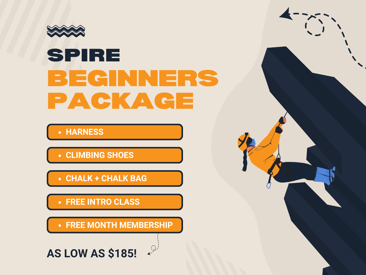 Dive into the world of climbing with our comprehensive Beginner's Climbing Package, designed to make this exhilarating sport more accessible than ever! This all-inclusive bundle equips you with everything you need to embark on your climbing journey, including climbing shoes, harness, chalk bag, and chalk. Enjoy additional perks such as a FREE 1-month membership*, Intro to Climbing class, and immediate instruction to jumpstart your skills. Plus, if you upgrade to an Autopay membership within 2 weeks after your trial ends, we'll waive the enrollment fee. With prices starting as low as $185, this package offers over $100 in savings! Get professionally fitted by our expert staff and unleash your climbing potential today.