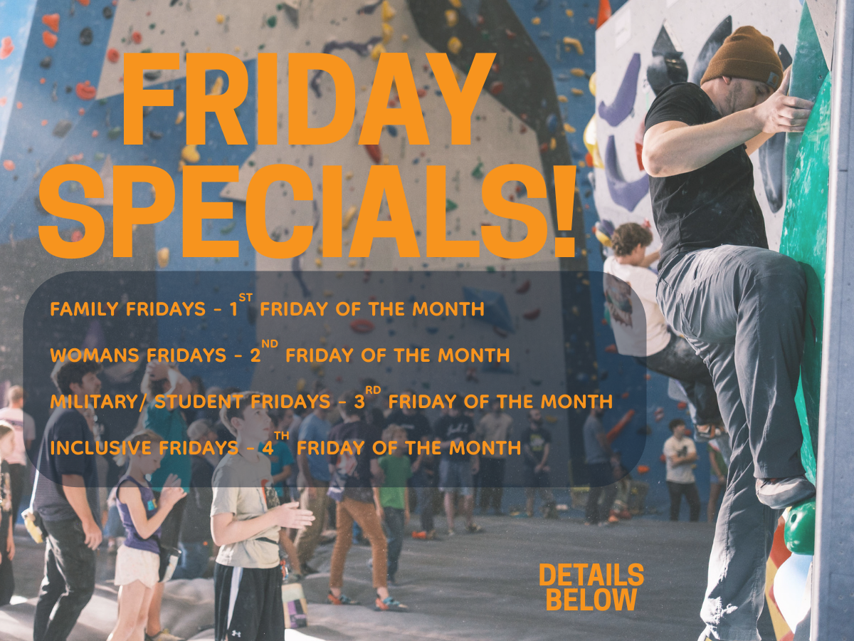 Discover unbeatable deals at Spire Climbing + Fitness! Every Friday, take advantage of discounted day passes tailored to different groups, from Family Fridays to Women's Fridays and Student & Military Fridays. Get started on your climbing journey with our Beginner’s Climbing Package, designed to equip you with the skills and gear you need to conquer the wall. Plus, don't miss out on our exclusive Summer Membership Special, offering fantastic savings and access to our top-notch facilities.