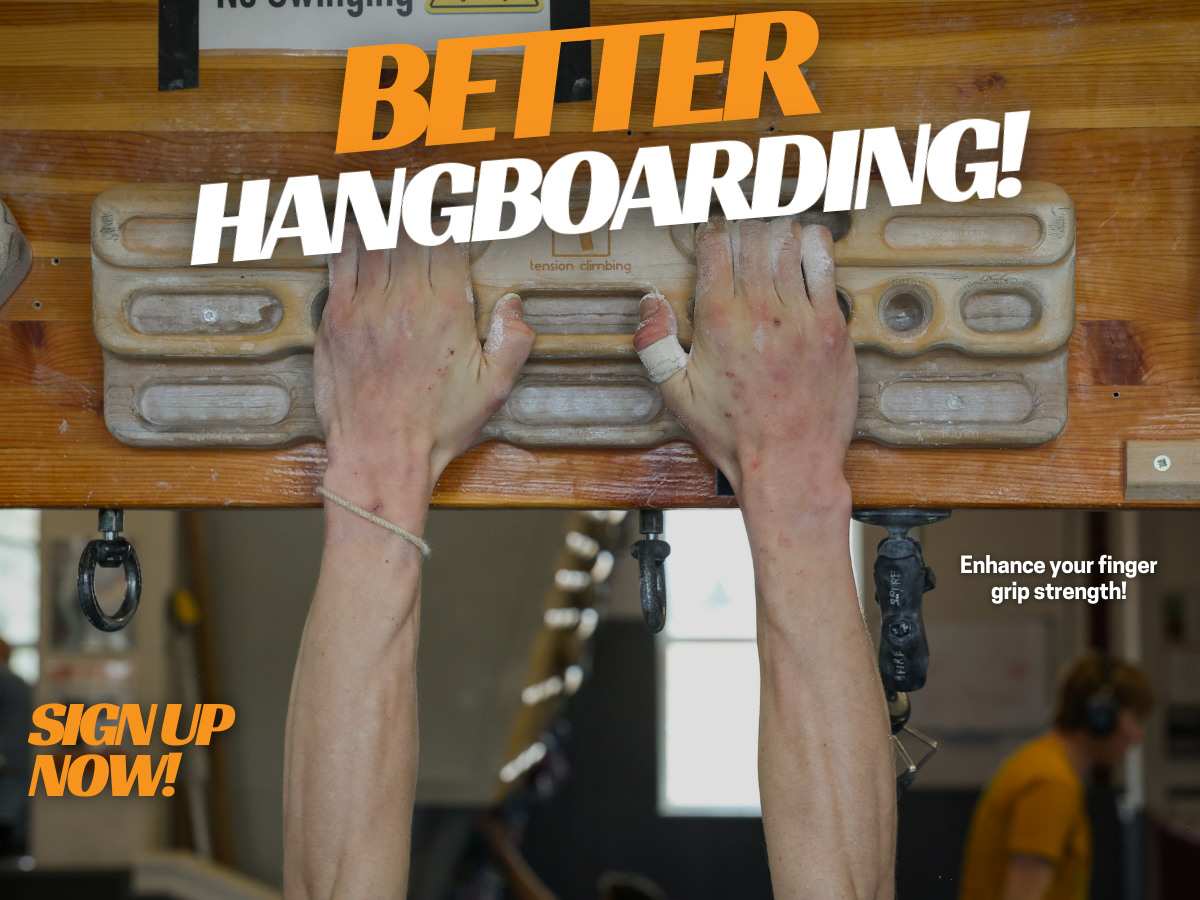 Enhance your finger and grip strength with our Better Hang Boarding class. Join us to learn essential techniques and training methods on the hang board. Strengthen those fingers and improve your grip, so you can dominate the outdoor routes with confidence. You will learn about different exercises, grip positions, weight assists, and injury prevention techniques; all to help you hold on a little longer. This class is FREE for all members.