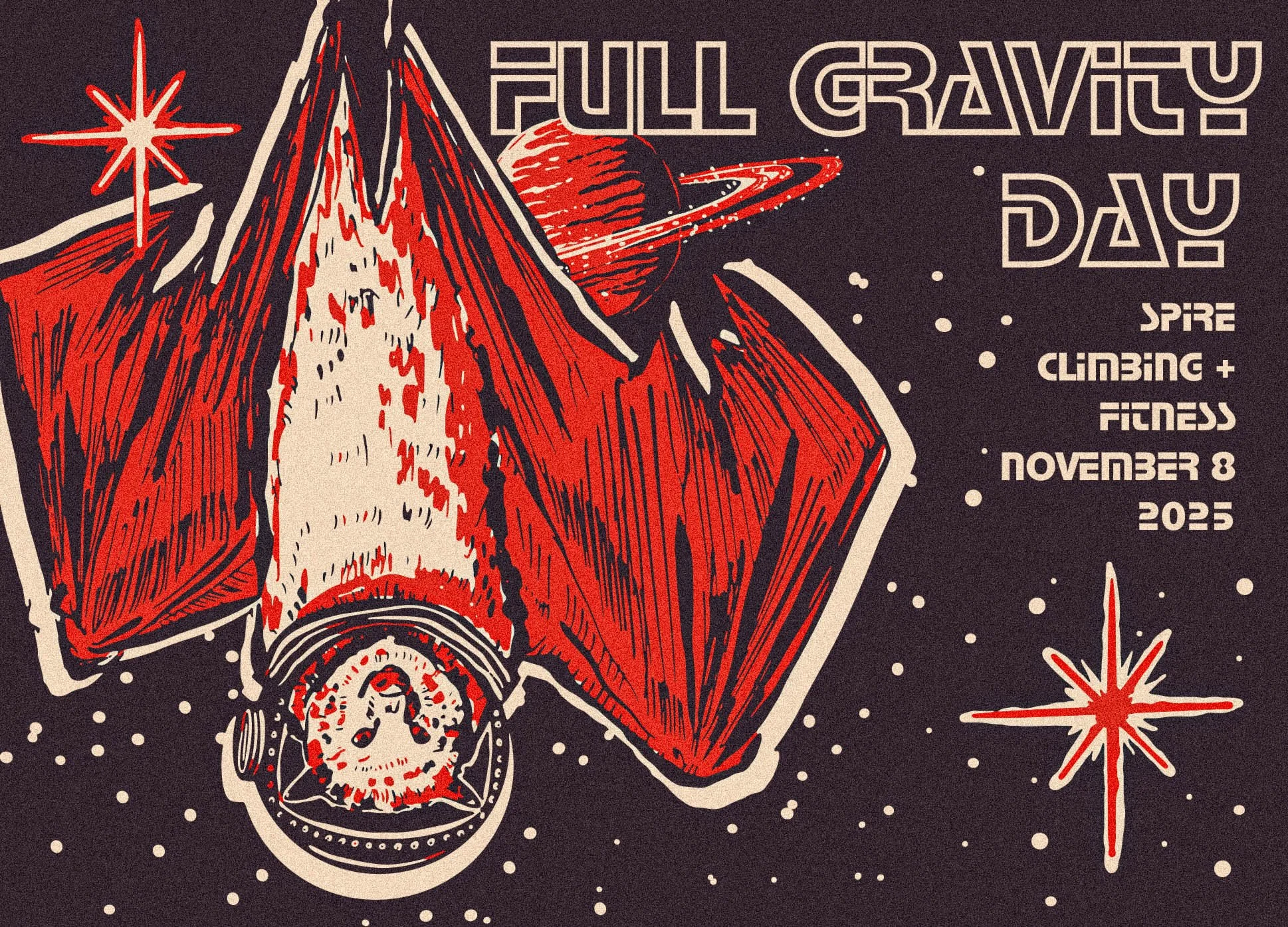 T-Shirts: Snag your limited-edition Full Gravity Day tee day of—designed for climbers who crush in zero gravity and look stellar doing it. Featuring cosmic graphics and bat-wing flair, these shirts are first come, first serve at check-in for $20. Suit up like a space bat and rep your intergalactic style!